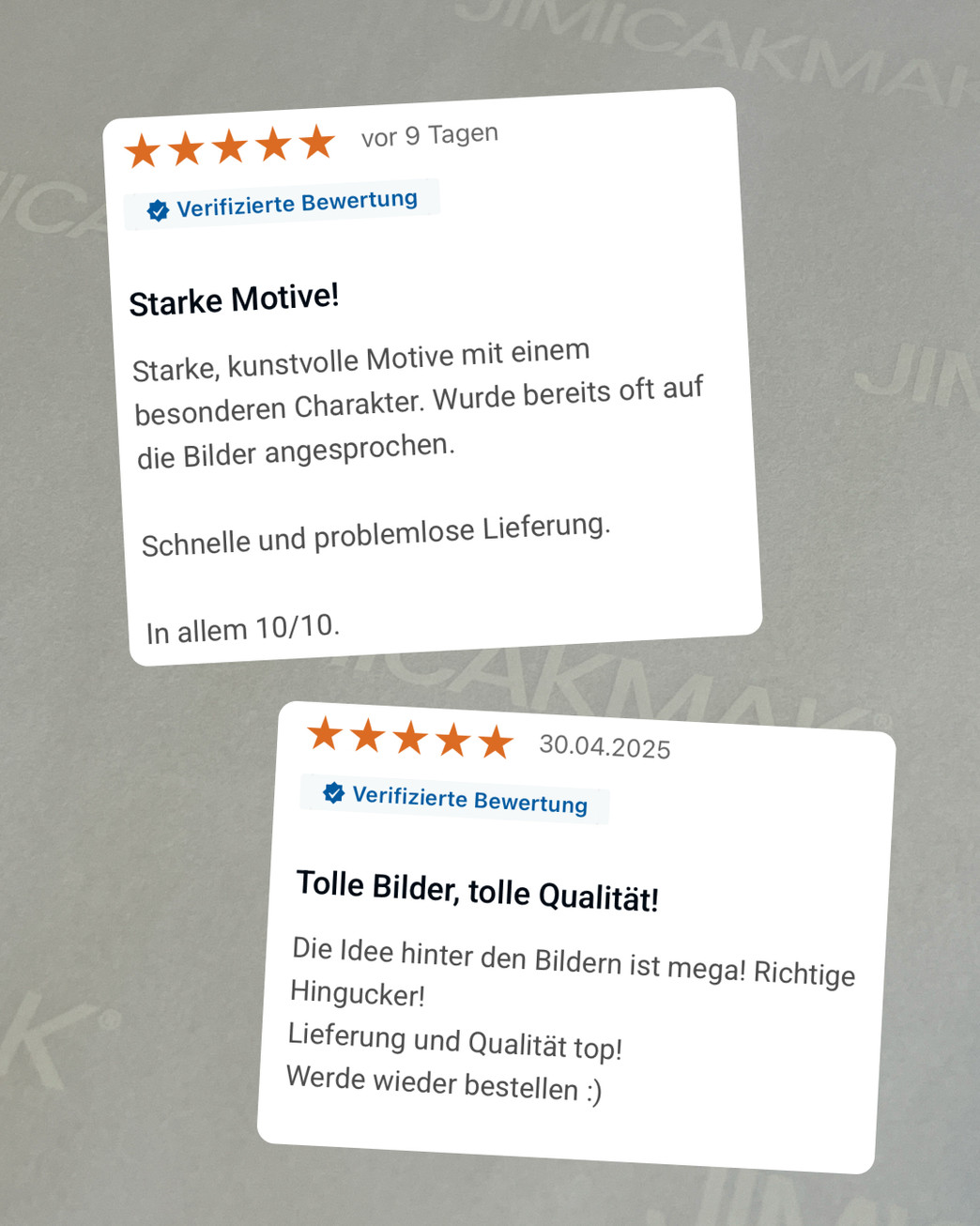 Dein Kunstdruck wird sorgfältig und doppelt verpackt, damit er unversehrt bei dir ankommt. Die Lieferung erfolgt in der Regel innerhalb von 2–5 Werktagen. Ab einem Bestellwert von 70 € ist der Versand innerhalb Deutschlands kostenlos.